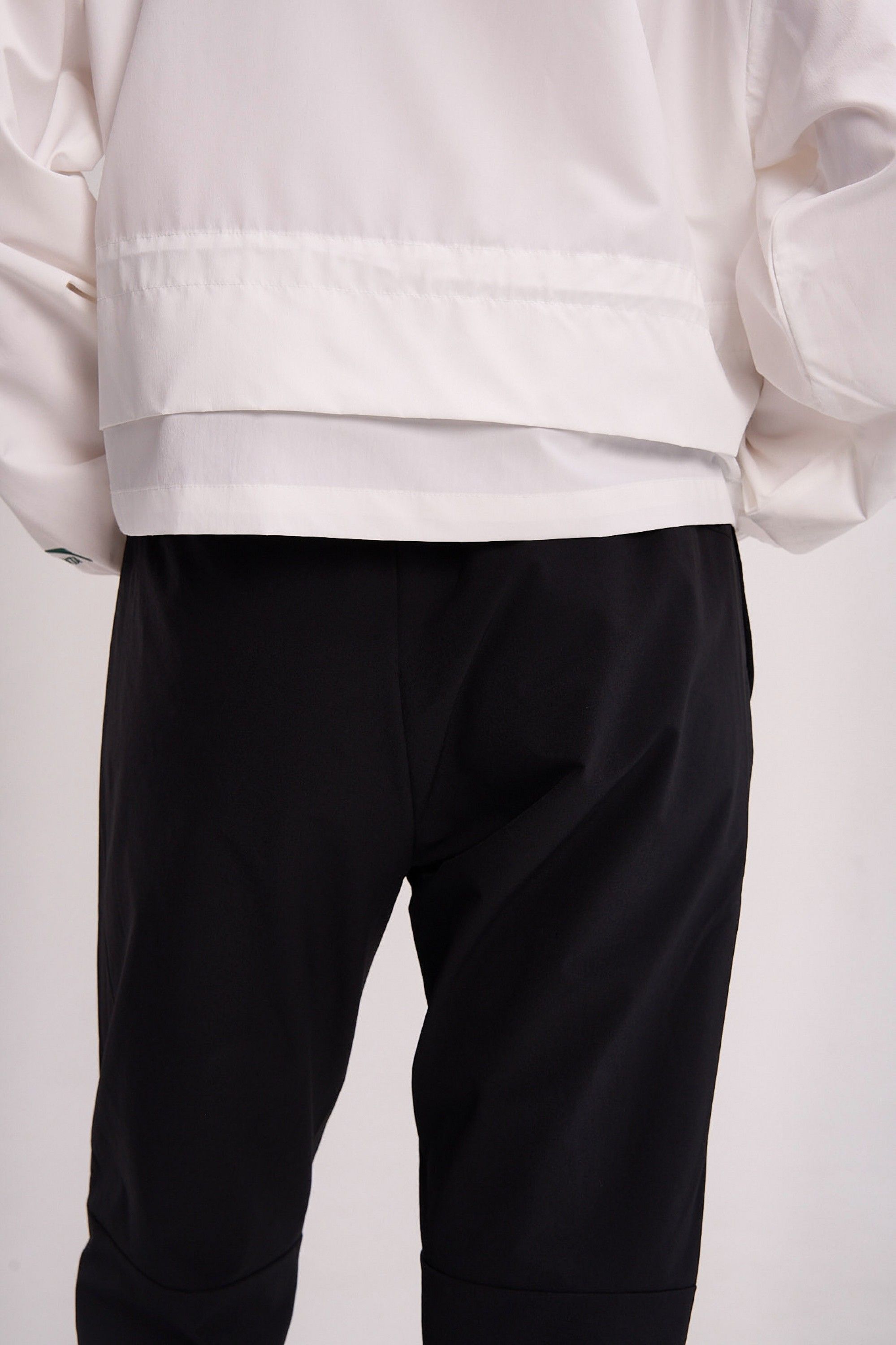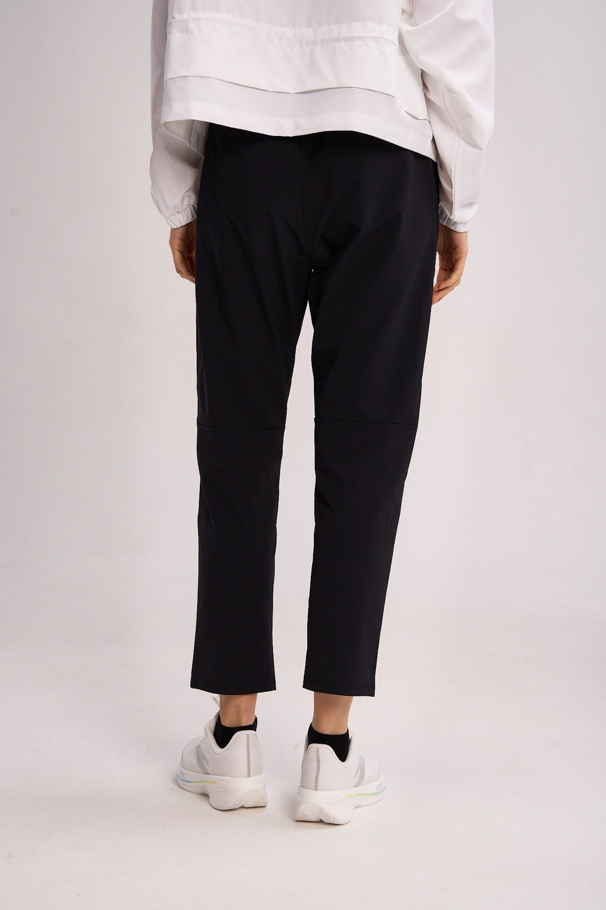 Дополнительные швы в зоне коленей с обратной стороны повышают прочность и долговечность. Эластичный пояс со скрытым внутренним шнурком обеспечивает индивидуально настраиваемую посадку. Два боковых кармана с молниями надежно сохранят необходимые мелочи. Суженные к низу штанины создают легкий, обтекаемый силуэт, который не мешает движению и придает образу собранность.