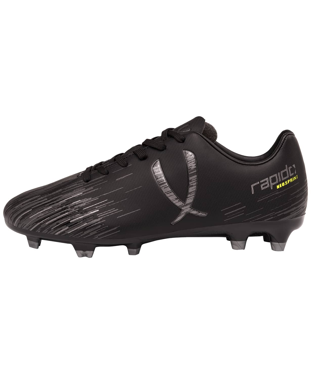 В Rapido используется технология Speedtech для максимальной скорости на поле. Новая форма анатомической колодки для еще более правильного положения стопы. Носочная часть усилена дополнительной прошивкой. Мягкая стелька из материала ЭВА смягчает нагрузку и обеспечивает необходимый комфорт. Для обеспечения дополнительного вентилирования в язычке сделаны специальные отверстия. Конфигурация подошвы из 11 шипов обеспечивает комфортное сцепление с поверхностью и позволяет развивать максимальную взрывную скорость.